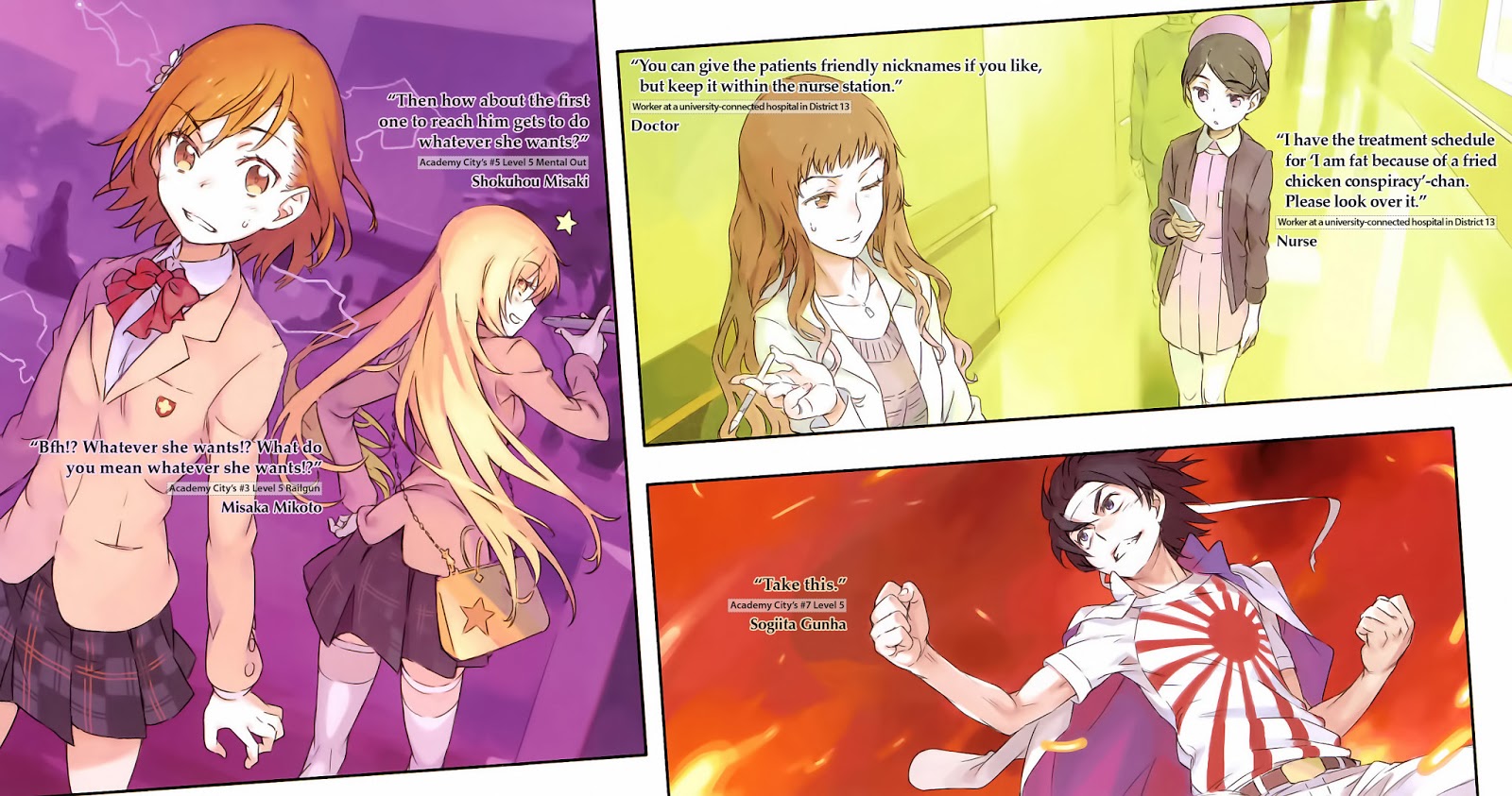 Ahora normalmente esto no me molestaría mucho en si, pero la historia no cambia mucho, no avanza realmente aunque tiene algunos puntos potenciales, primero ahora le dan mucha importancia o los miembros del Board of directors ya están tomando acciones antes morían sin mayor importancia. Que los Kiharas están metidos en todo y el cruel uso de tecnología... no es nada nuevo realmente. El mayor potencial y problema es como manejan a Tsuchimikado ahora. El crecimiento de los personajes fue nulo o retroceso (aunque creo concederles que fue relajo... hasta que llegue a la parte de los héroes). Lo único decente que puedo darle es el nivel de madures que esta teniendo Touma.